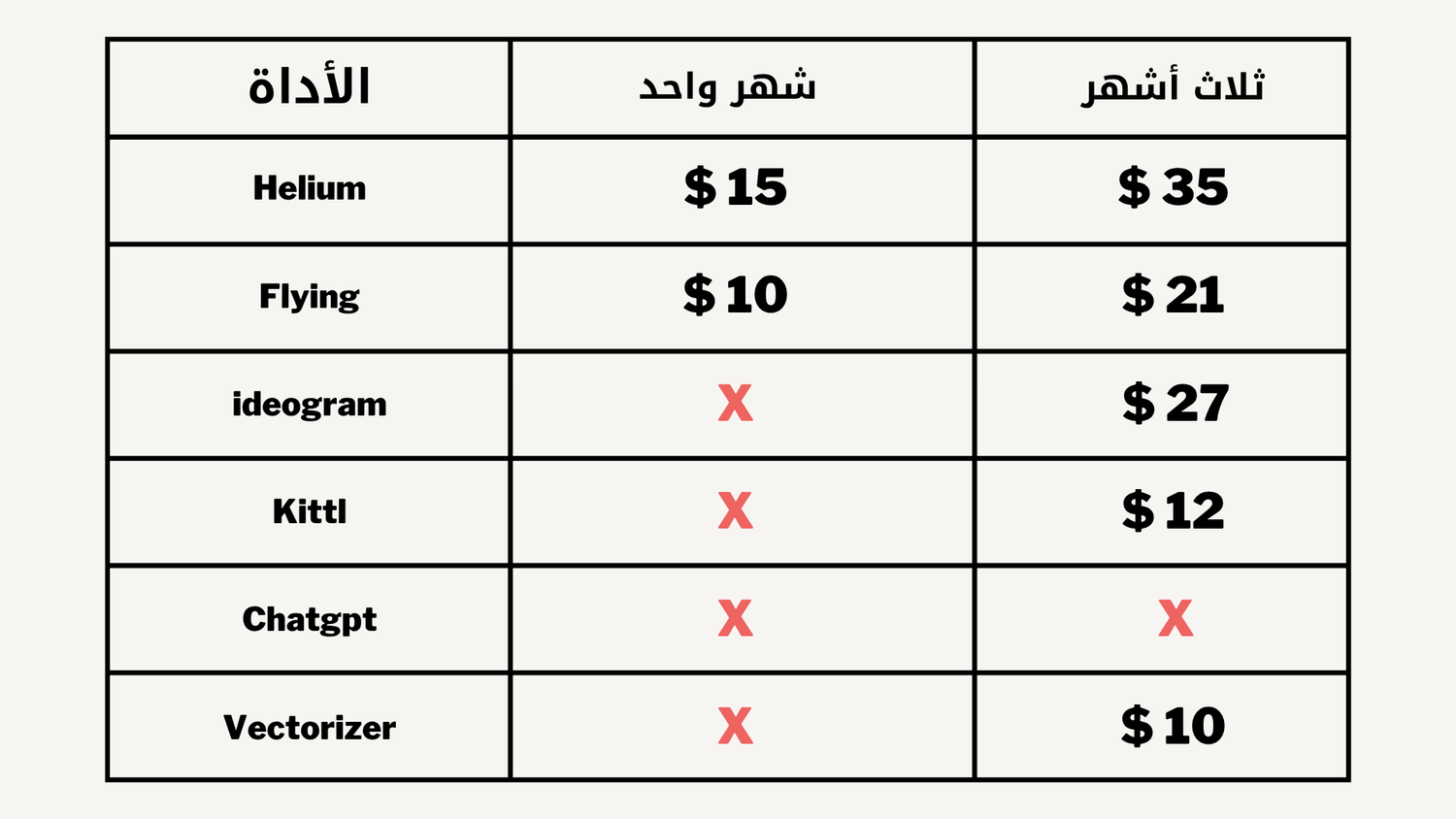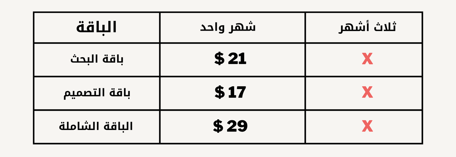 - يمكنك الاشتراك في اداة واحدة أو أكثر من أداة بشكل فردي حسب الاسعار الموضحة في الجدول أدناه - يمكنك الاشتراك لشهر واحد او لثلاث أشهر متتالة وذلك اولاً لتوفير أكبر وثانياً لتجنب نسيان التجديد بداية كل شهر